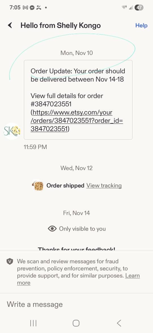 10: Etsy notifies you when your order is delivered.